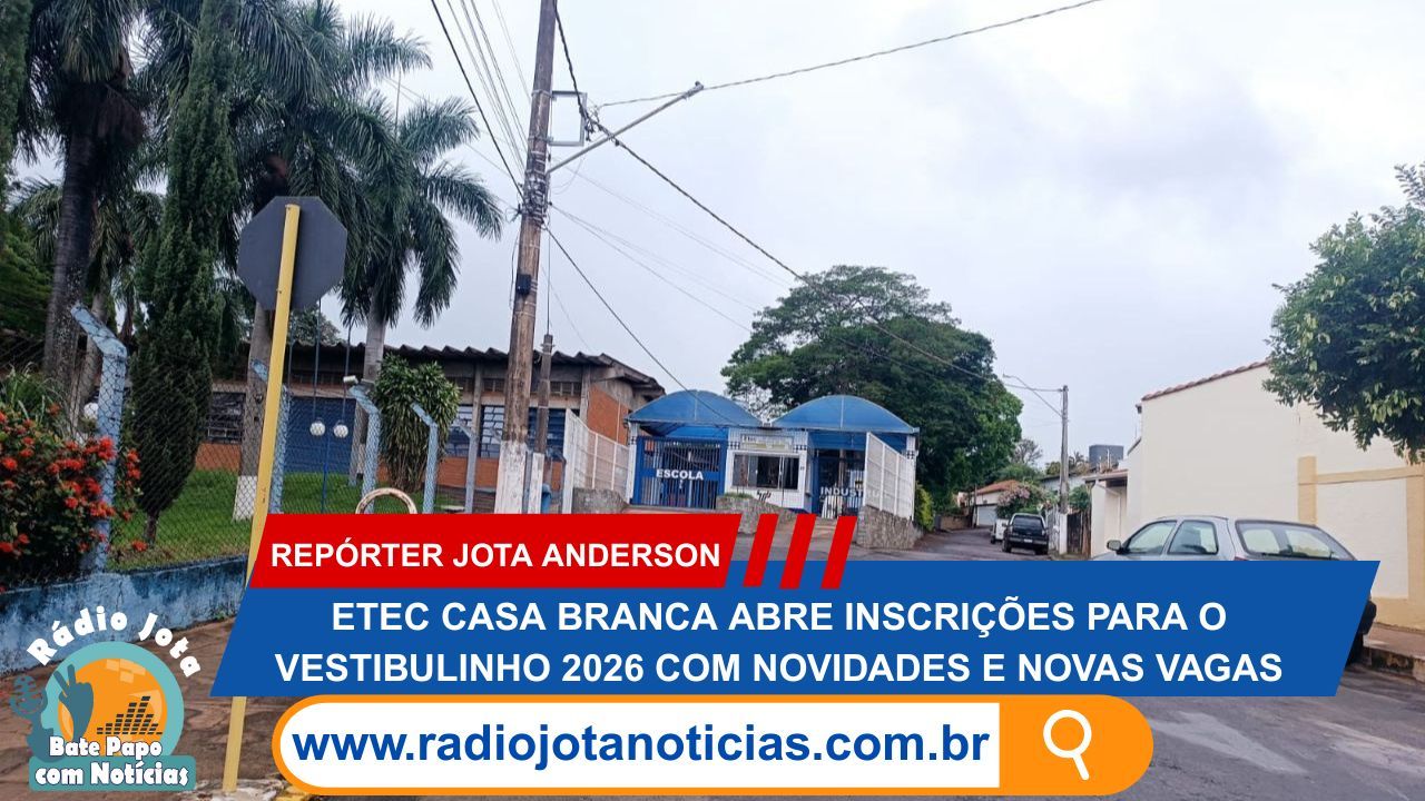 A Escola Técnica Estadual (ETEC) de Casa Branca está com inscrições abertas para o Vestibulinho 2026, oferecendo diversas oportunidades de formação para estudantes que desejam se preparar para o futuro com ensino de qualidade e formação técnica.