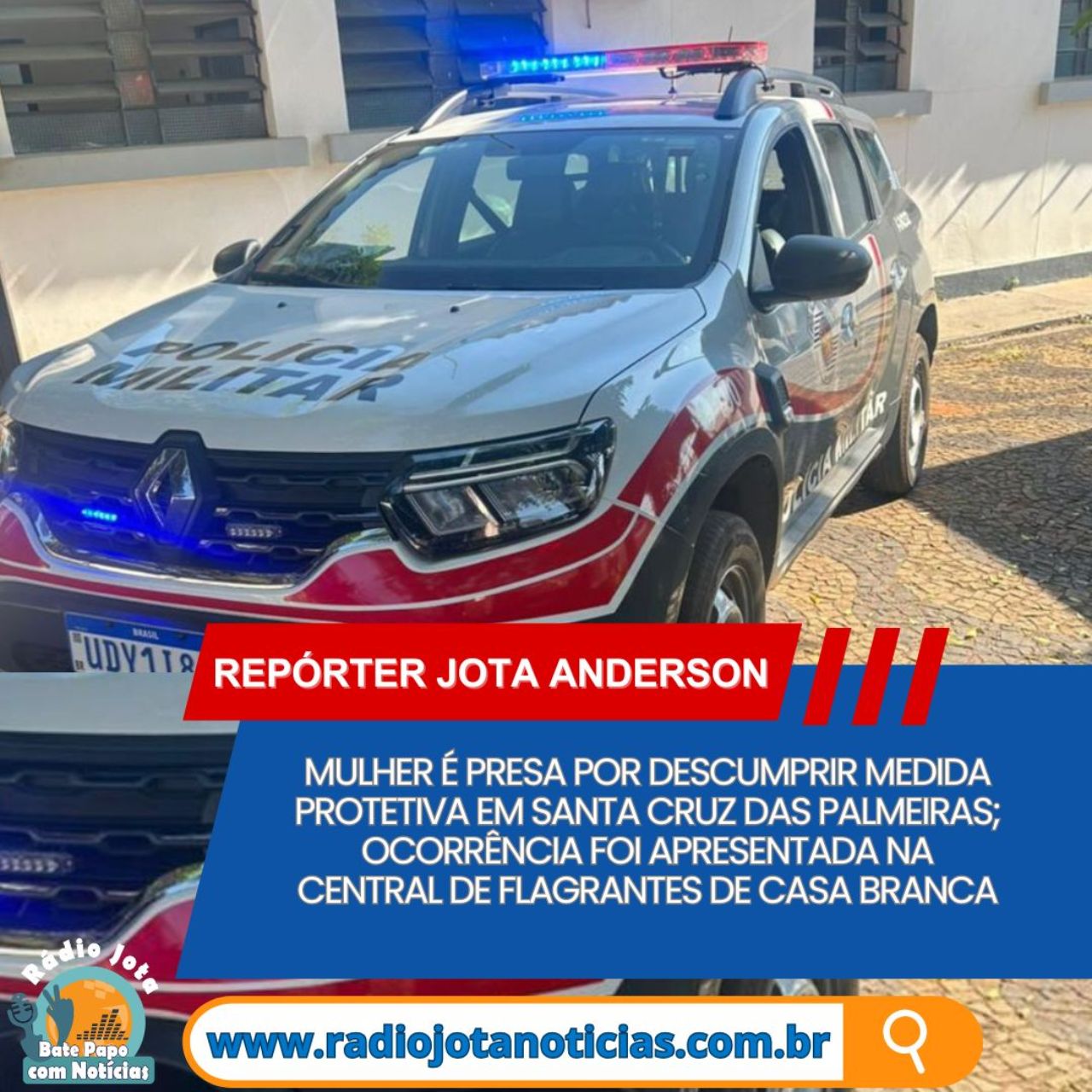 Uma mulher foi presa na manhã deste sábado (25) por descumprimento de medida protetiva de urgência, com base na Lei Maria da Penha, em Santa Cruz das Palmeiras.