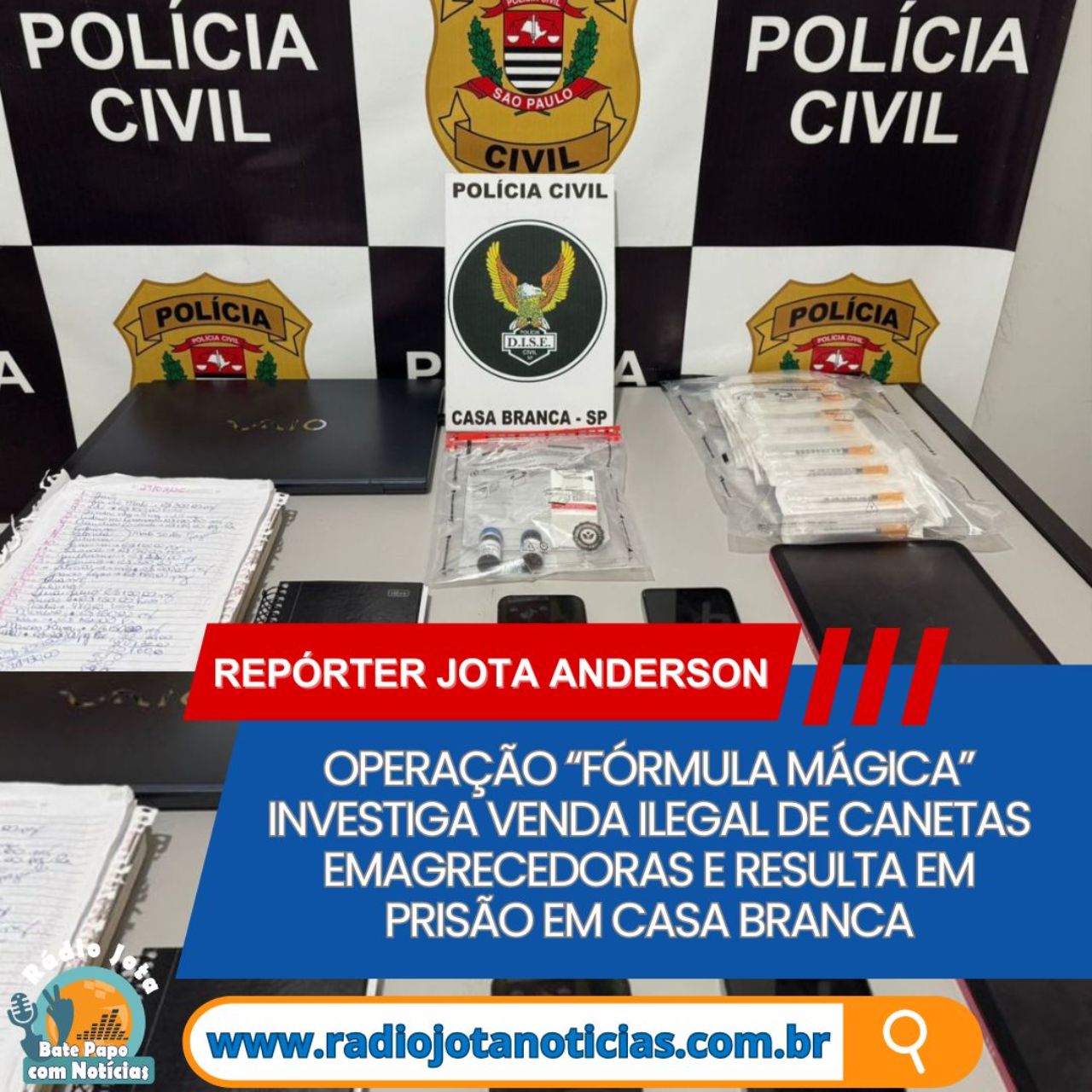 Na manhã desta quarta-feira (8), a Polícia Civil realizou a Operação “Fórmula Mágica”, por meio das delegacias especializadas DIG/DISE da Delegacia Seccional de Casa Branca/SP, com o objetivo de combater a venda ilegal de chamadas “canetas emagrecedoras”.