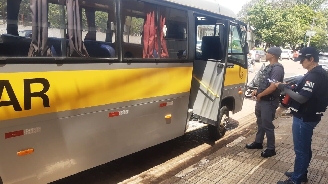 Entre as irregularidades constatadas, estão a condução de veículo sem a devida autorização para transporte escolar e a ausência de inspeção semestral obrigatória de segurança veicular.