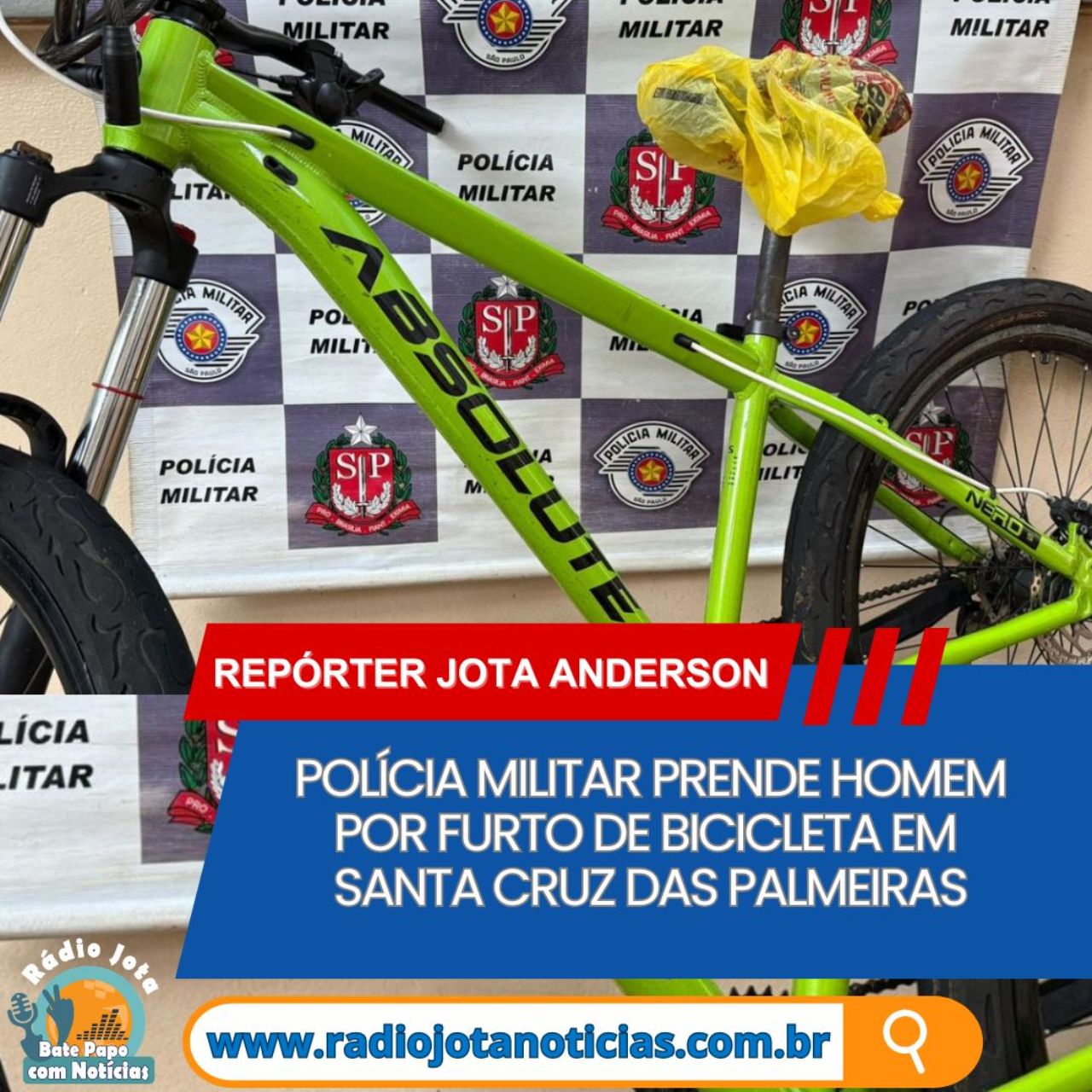 Um homem foi preso na tarde desta quarta-feira (18) suspeito de furtar uma bicicleta em Santa Cruz das Palmeiras. A ocorrência foi atendida por policiais militares durante patrulhamento de rotina.