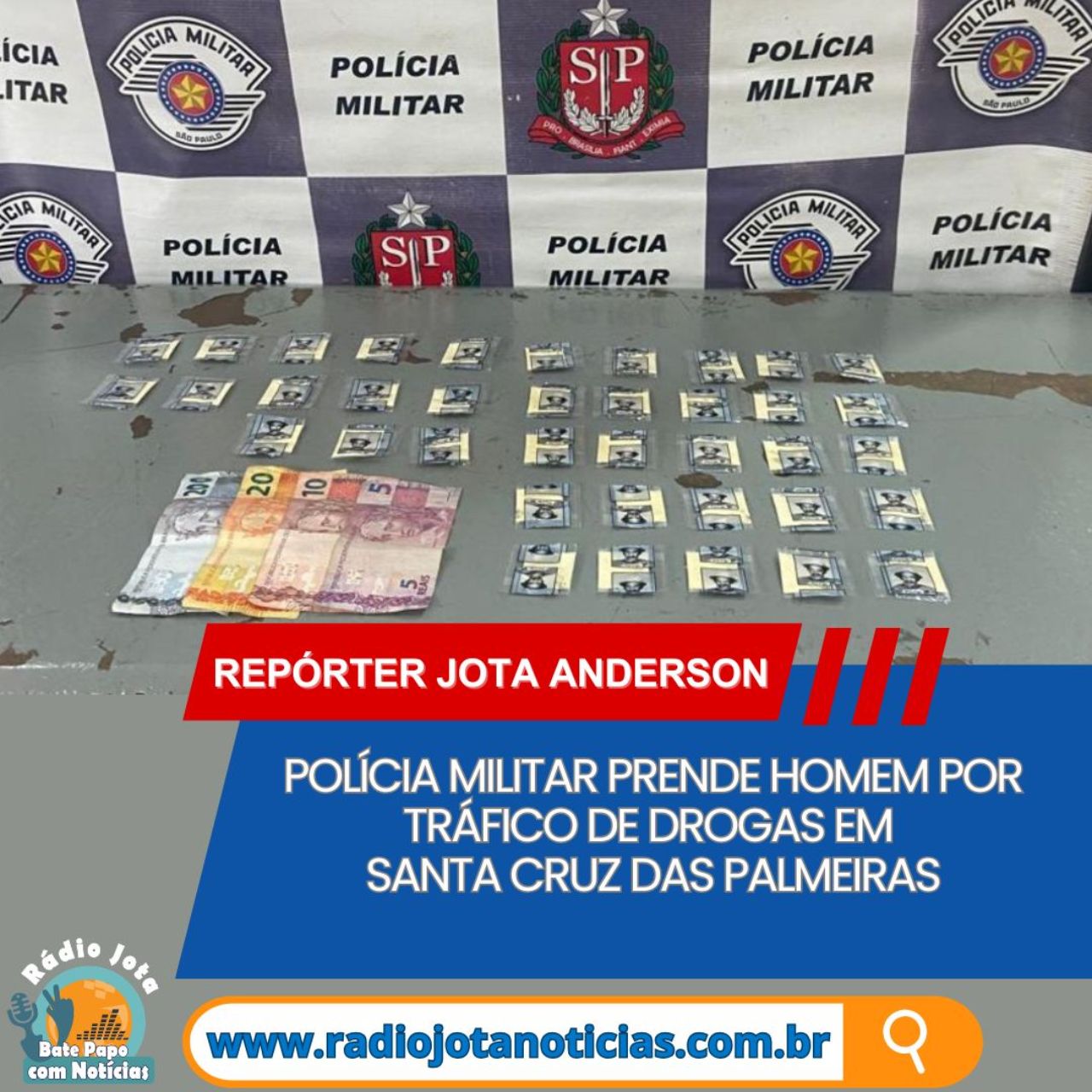 Um homem foi preso em flagrante por tráfico de drogas na tarde desta sexta-feira dia 13, em Santa Cruz das Palmeiras, após ação da Polícia Militar durante patrulhamento preventivo.