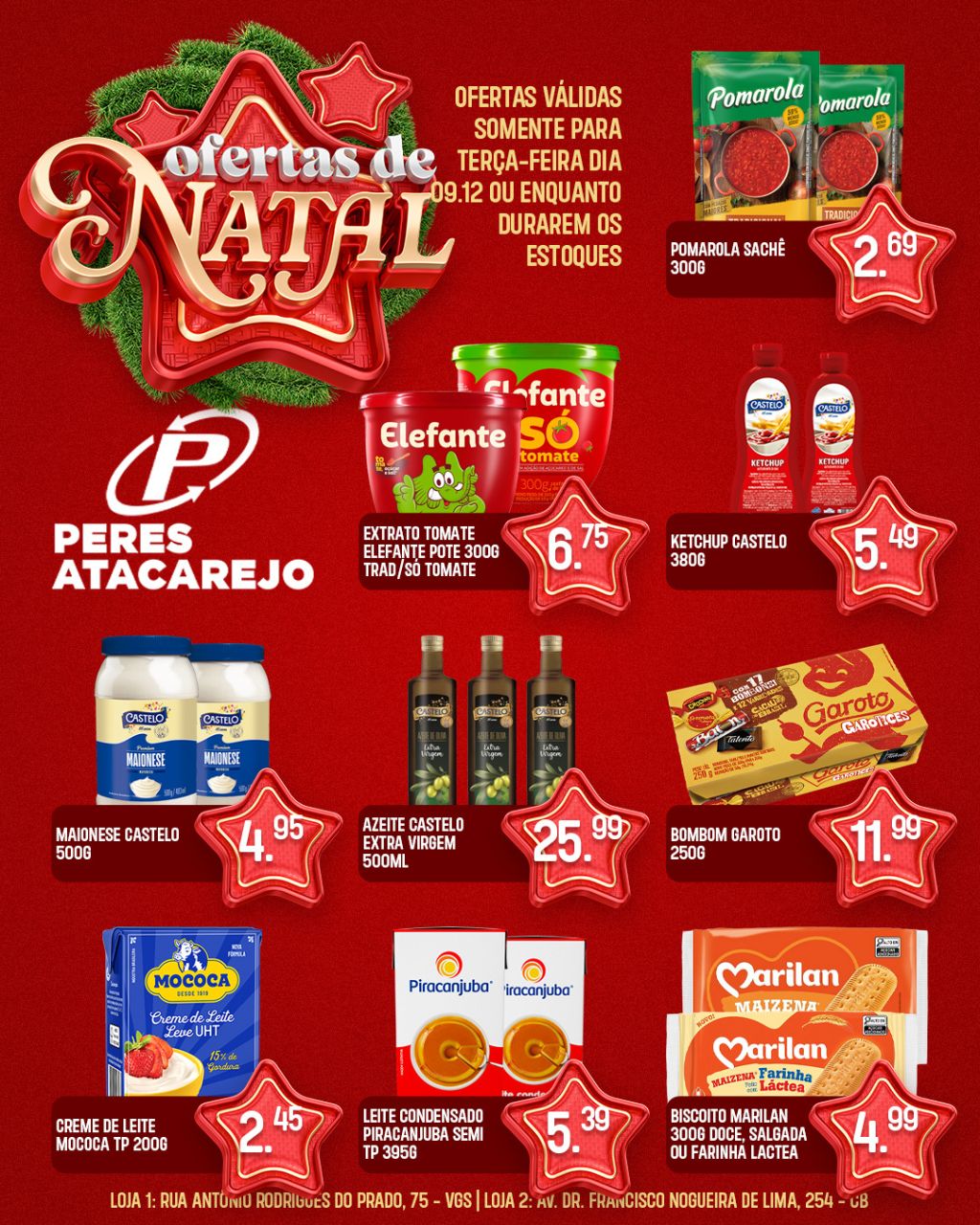Ofertas válidas somente nesta terça-feira, dia 09/12.