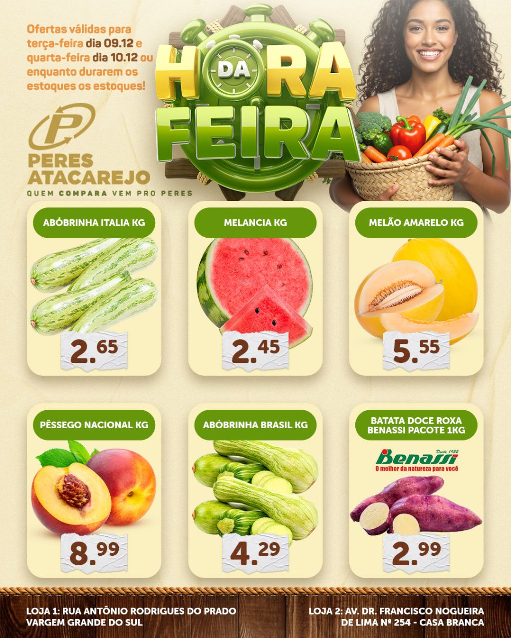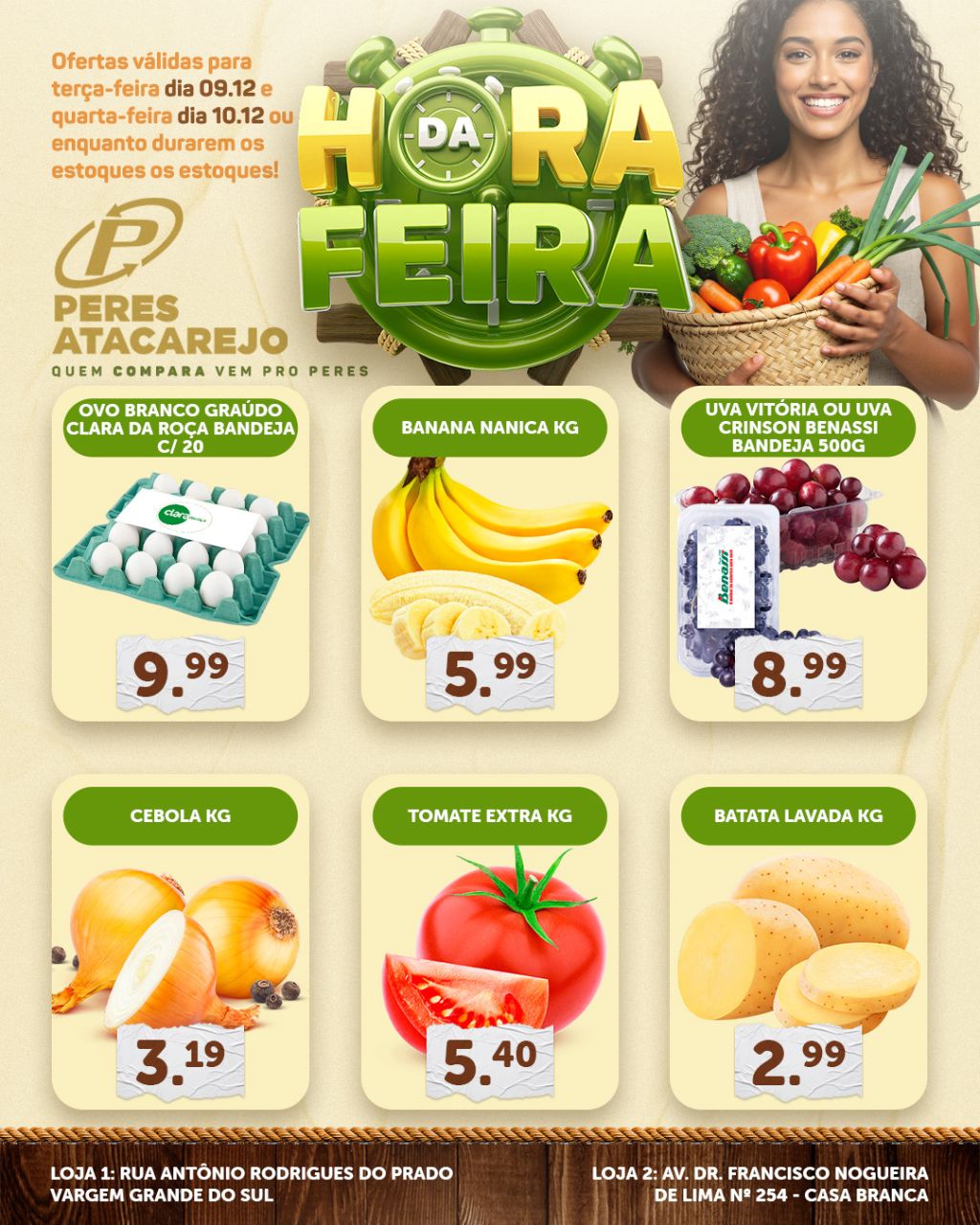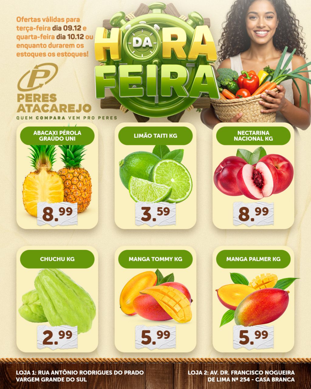 A semana já começa com economia garantida no Peres! Nesta Terça e Quarta do Hortifruti, você encontra frutas, legumes e verduras selecionadas, fresquinhas e com aquele precinho que só o Peres sabe fazer.